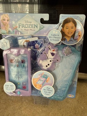 [This review was collected as part of a promotion.] Icy Magic Phone by Frozen Disney is so much fun! My daughter is enjoying her pretend play with the super fun phrases and messages from Elsa, Anna and Olaf, enjoyable ringtones and sound effects. The phone comes with a matching phone case and an Olaf charm and is an interactive play for my child.