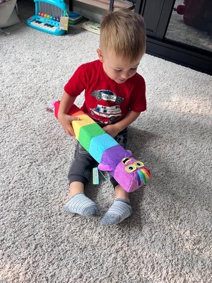 [This review was collected as part of a promotion.] I show him the colors on each block trying to help him learn his colors. I also count the block to tech him number and it also is a great stuffy for bedtime and to carry around with him.