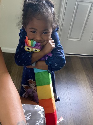 [This review was collected as part of a promotion.] I received this item for free in exchange for my honest review. Numberblock seven Playful Pal is such a cute new item to add to my arsenal of educational toys. I'm a part-time stay at home mom who is solely responsible for my daughter's education, I always try to teach her new things and give support to where she struggles. Being a little over 2 years old now she is hitting so many new milestones and absorbs new information. She has slightly struggled with colors, not that she can't name them, but she doesn't see enough solid and true colors to feel confident naming them. So, this toy has been a big help in identifying and recalling the names of colors. I noticed she took to this toy instantly and points to every single color, she plays with it daily. The quality is great, the structure of the toy is sturdy and it keeps it's shape. The colors are very clear. The hands have velcro, it seems it can attach to another toy, perhaps. The velcro does not interfere with playing and is not too sticky. Overall, I would highly recommend giving this guy a try if you're looking to educate your child with colors and counting.