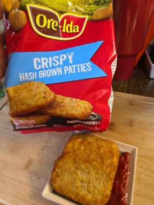 [This review was collected as part of a promotion.] Ore-ida crispy hash brown patties shredded potatoes come out crispy and taste good. Easy to make, a great value for the family and the kids love them.