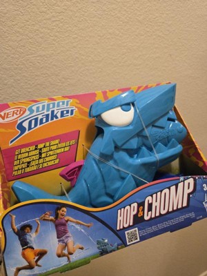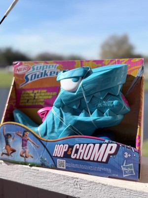 [This review was collected as part of a promotion.] The Nerf Super Soaker Hop and Chomp is a fun, kid friendly water blaster with a unique action design instead of a traditional trigger. It’s easy to ise, light weight and great for kids. However, it doesen’t shoot very far and needs to refills frequently.