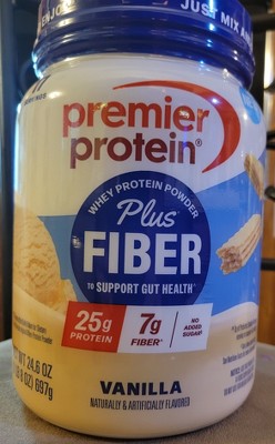 Premier Protein Plus Fiber Powder - Vanilla - Whey Protein - 24.6oz/17 Servings