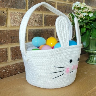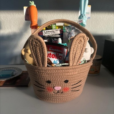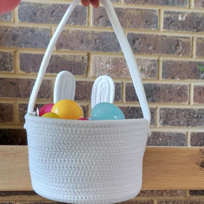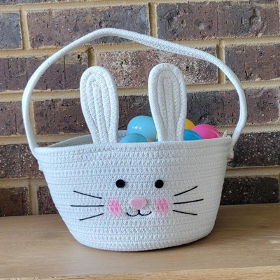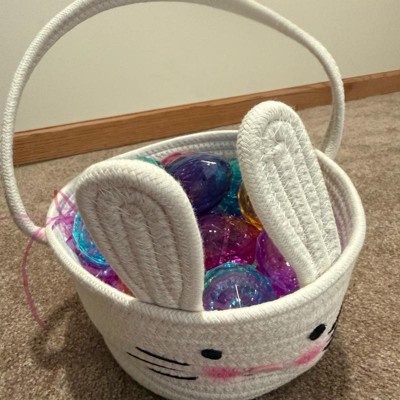 This is simply the sweetest Easter basket I’ve seen in ages. The super cute bunny face on the white woven rope basket is sure to be a hit this year. It’s not very big but will fit everything I plan to give to my grown and flown kids. It is great quality however unless the contents are balanced, the handle is off a bit on my basket so when I lift it, the heavy items falls out if not careful. I would strictly use this as a giving basket, not for collecting Easter eggs because they’ll fall out easily. It’s a great value for a quality basket and I plan to use after the holidays for decor.
