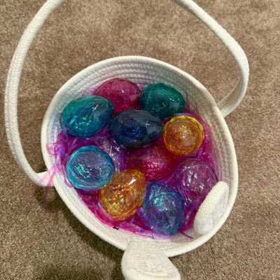 This basket is super fun for Easter. Right now its filled with plastic eggs in the house but my son plans on using it for an actual egg hunt this weekend. Super cute as a decoration but also practical for my son to use. This basket holds up to my child who is very hard on toys. My son loves using this basket.