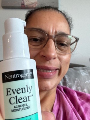 [This review was collected as part of a promotion.] This Neutrogena Evenly Clear acne gel moisturizer is gentle, has no fragrance, absorbs fast, and it isn't greasy. I like the pump style and there's a lot of product. I'm excited to try the product for a few more weeks and see how much my post-acne marks fade.