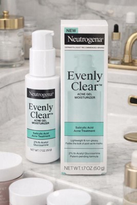 Neutrogena Evenly Clear Acne Gel Face Moisturizer with Salicylic Acid - 1.7 fl oz: Vegan, Noncomedogenic, Oily & Acne-Prone Skin
