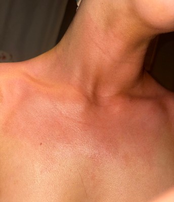 Within 10 minutes of this product being on my skin, my skin turned bright red and started to itch. I have used their tanning mousse multiple times before with no problems. I do NOT have sensitive skin or any allergies whatsoever. But whatever skin this product came in contact with is now bright red and so hot!! My whole chest and neck is completely red and flared up from this product!!