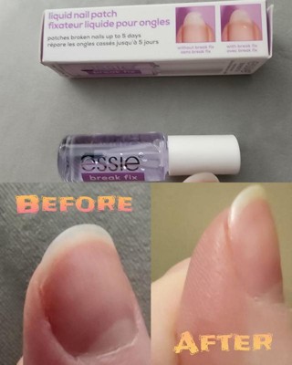 [This review was collected as part of a promotion.] I received this product complimentary for my honest opinion, and it works. I get breaks in my nails as they start getting longer, and my hair gets caught in the break, and pulls it when washing my hair, or the nail rips off at the break. I applied the Essie Break Fix on the break, and it sealed it up, and I stopped getting my hair caught in it, and stopped the nail from ripping off. This is a good liquid nail patch, I will be using this on my nails for now on. It has a shiny finish, and can be worn alone, or under polish.