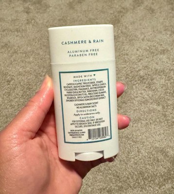 This deodorant has garnered positive feedback for its delightful scents, particularly the cashmere rain fragrance, which many guests describe as fresh and clean. The smooth application and long-lasting effectiveness are frequently praised, making it a reliable choice for daily use. Guests appreciate the use of natural ingredients, which are gentle on the skin, and the sleek packaging that is convenient for travel. Overall, it stands out as a favorite among various options.