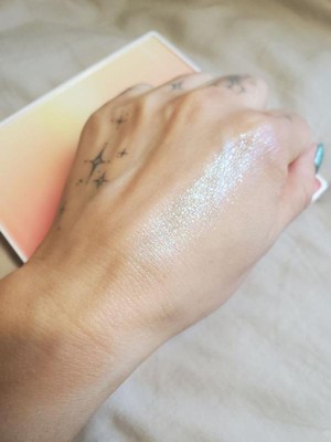 [This review was collected as part of a promotion.] I love these highlights! I have been receiving so many compliments! This blueish shade is so blinding and pretty! I also like to mix the two when I can’t choose which one I want to wear. Very similar to the fenty one, just a different texture in the pan. 10/10 recommend