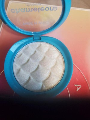 [This review was collected as part of a promotion.] The packaging is super cute and I love the embossed design. The color is so pretty and left a nice shimmer that wasn't chalky or too glittery. I used it all over my cheeks as a highlighter and on my decolletage and it looked so good when the light hit.