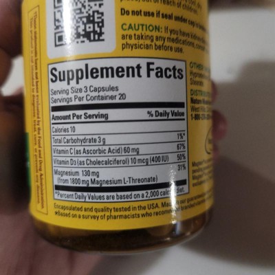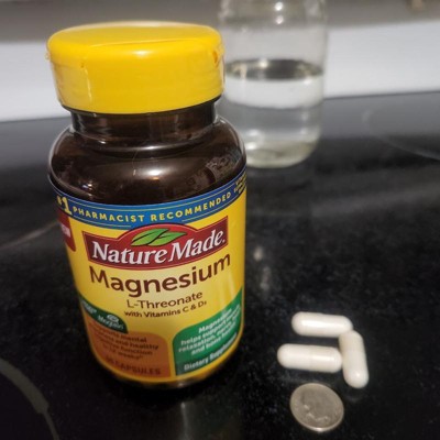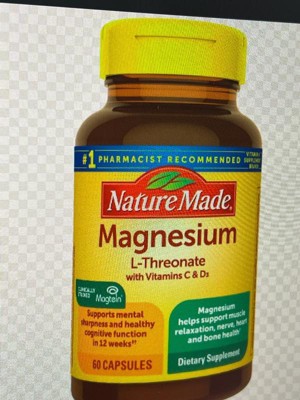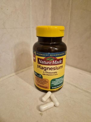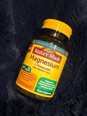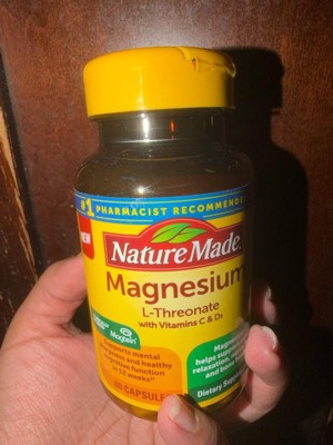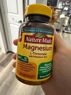 - Cognitive & memory(1) support supplement: contains one 60 count bottle of Nature Made Magnesium L-Threonate with Vitamin C & Vitamin D 3 Capsules for a 20-day supply