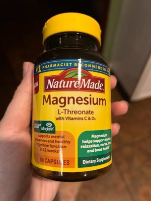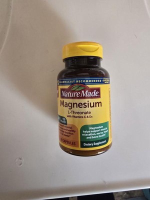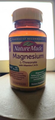 [This review was collected as part of a promotion.] I’ve really been impressed with the Nature Made Magnesium L-Threonate with Vitamins C & D3. The capsules are easy to take, and I like that they combine magnesium with extra vitamins for added support. I feel a bit more relaxed in the evenings, and it’s been gentle on my stomach. The bottle is clearly labeled, and I trust the brand’s quality. Overall, it’s a convenient way to add magnesium to my routine, and I’d definitely buy it again. (And as always, it’s a good idea to check with your doctor before starting any new supplement.) Shortly after receiving this my chiropractor actually told me to start taking magnesium and it has helped with my hand cramps!