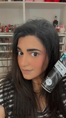 [This review was collected as part of a promotion.] I received this product for free in exchange for my review. This product name is accurate - “a hint of black” - because it’s still quite light, just not white like regular dry shampoo. You can see in the photo (pre-brushing, don’t judge lol) where I sprayed the product. It brushed out nicely once absorbed into my hair, but some of the color residue was visible on my skin around my hairline. My hair felt really stiff after using - I don’t expect my hair to be soft after using dry shampoo, but it was notably stiffer after using than other dry shampoos I’ve used