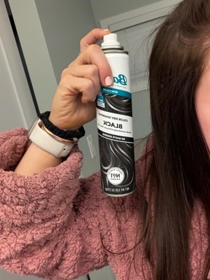 [This review was collected as part of a promotion.] This dry shampoo actually doesn’t come out black. It’s moreso for those with black or dark hair so that you don’t see the product on black hair. The typical dry shampoo leaves a white residue that can be challenging to get rid of especially when you’re in a hurry and trying to look clean…fast! It’s not sticky and it makes my hair feel refreshed. After you spray it, you just need to massage it in as if you’re washing your hair. Try and get to the roots if you can.