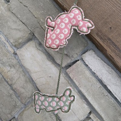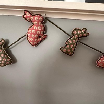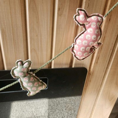 I purchased this Easter garland online for my home. This Easter themed plush garland features cotton bunnies in alternating pink and green shades in varying prints. They are on a sage green string, which is about 72 inches long. I do wish it was a little bit longer to stretch across the full length of my fireplace, but it still.looks adorable and like I'm ready for spring. This is reasonably priced and a simple way to spruce up my living space on a budget.
