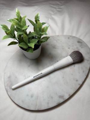 This brush is fantastic, the brsitles are soft and it gives me great control if i want to build up or diffuse out the pigment of my blush. I wish morphe offered all their brushes in one set, but it is probably better for me wallet that they don't. I am hoping to try more of their brushes in the future. I have also tried the M132 cocealer brush and it is also great. Since I am acne prone I love the antibacterial component of these brushes, but more than anything I love how they feel when I use them/ This brush is fantastic! The bristles are soft and give me great control, whether I want to build up or diffuse out my blush. I do wish Morphe offered the entire brush collection in one set. But honestly, it's probably better for my wallet that they don't. I'm excited to try more of their brushes in the future. I've also used the M132 concealer brush, and it's just as great. Since I'm acne-prone, I really appreciate the antibacterial component, but more than anything, I love how these brushes feel when I use them.