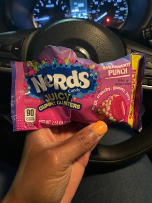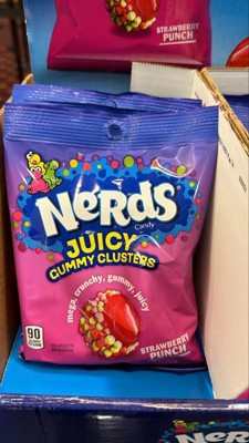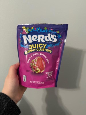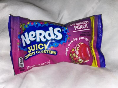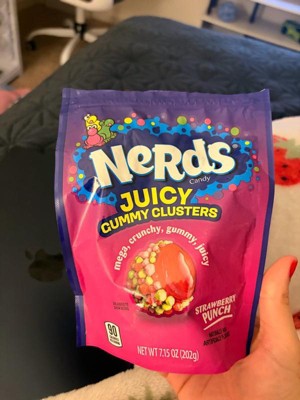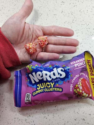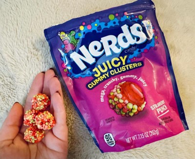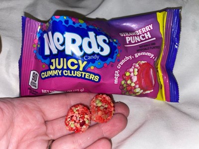 These are very good so don't let the 3 stars fool you. I give it three stars because I feel like they are labeling these as "juicy" but they really just taste like a bigger version of the normal Nerd Gummy Clusters! These are very sweet and have a crunchy but chewy texture. A couple of these is plenty enough for a serving! I feel like I can't eat a lot of these or I get overwhelmed! These have a very strong/ sour strawberry punch flavor! If you love sweet, sour, chewy candies, I would reach for these! 🍓