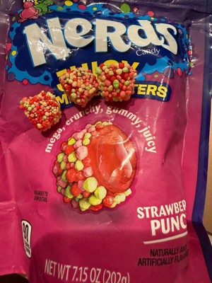 These tasty treats are currently my daughter's favorite so there are bags all over the house. If you're a fan of the original nerds in the tiny boxes these are just for you. Imagine the nerds now wrapped around a gummy center. Strawberry flavored and mushy with a crunch. Tart then sweet. Interestingly satisfying. I get her obsession.