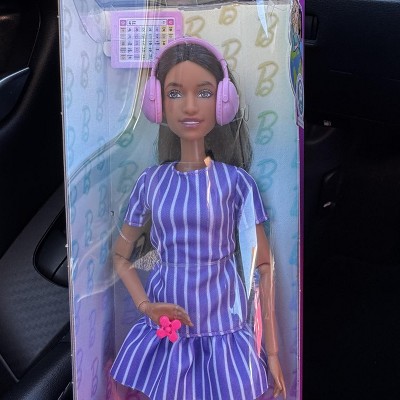 Barbie Fashionistas Doll #245 in Purple Striped Dress, Autistic Barbie with Accessories