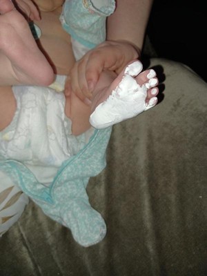 [This review was collected as part of a promotion.] This is such a cute little activity to do with a baby! My sister has a four month old little boy, so I went to her house and while she was in the bathroom, I quickly painted his little tootsies and gave this to her as a gift afterwards. Needless to say, she absolutely loved it! It is now featured front and center on her mantle.