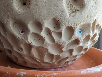 Cracks. Perhaps in the instructions they give advice to make the clay not crack. It's frustrating troubleshooting a product when it dries it's cracked.