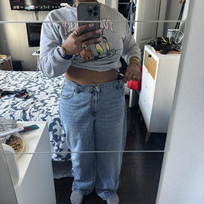 Love these! Sized up for an extra baggy look, just beware that if you’re 5’4 ordering a 17 that the mid rise is more of a extra high rise. Gapping in the back and need to hem the pants shorter but they’re such good quality and a great fit that it’s worth it in my opinion.
