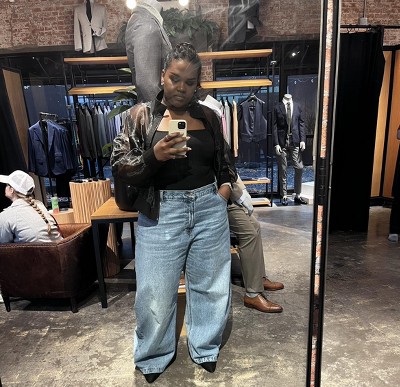 I love these jeans! The fit is so nice! I sized up 3 sizes to get the look I want for the long haul. The ring detail on the belt hoop is super cute. Paired with the cream denim top is chefs kiss!