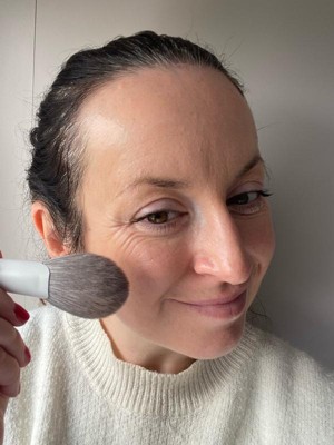 [This review was collected as part of a promotion.] This is so good it applies beautifully and gives my skin such a warm glow. It really helps finish off the look it applies great with my other makeup products. The brush is brilliant for even smooth application and is so soft.