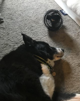 Bought for my rescue, double-coated mountain dog. Not enough A/C in back of car, so I put this on the armrest and it cools him right down. So happy with its power, lasted the whole 3 hour trip.