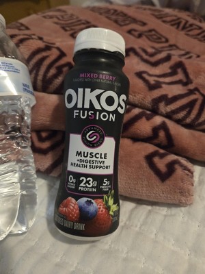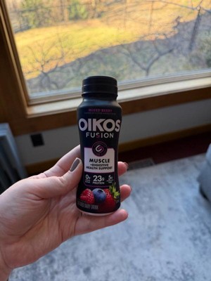 [This review was collected as part of a promotion.] Oikos Fusion yogurt drink is delicious!!! The berry taste is the perfect amount of sweetness without overkill. You’re getting 23 g of protein with 0 g added sugar that’s amazing. You just shake it very well. Open it up. You can drink right from the container or pour it in a cup like I did. It’s the perfect on the go protein.