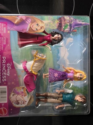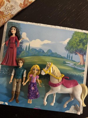 [This review was collected as part of a promotion.] We received a miniature Rapunzel character set. There are three people that came in the set and one horse. The people are small, like Little People. My granddaughter is three and a half so that is not an issue. She was very excited to pick this toy and to receive it in the mail. She loves to use her imagination and to make the characters talk and play. She is really enjoying this set