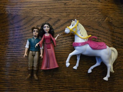 [This review was collected as part of a promotion.] This is a great accessory toy with three characters, Rapunzel, Flynn, and Mother Gothel, along with Maximus, the horse. The dolls are a good size for small hands and are poseable to allow for realistic play and riding the horse. They are a great add on to the Rapunzel's Tower Playset.