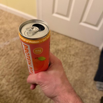 This protein pop taste okay, not just my favorite flavor. It’s a little bit tart at first then then peach flavor comes after, which is okay. It is a very refreshing pop, the can says 22 grams of protein which is a great amount for my daily protein intake, it has zero sugar too. It is a refreshing on the go drink.