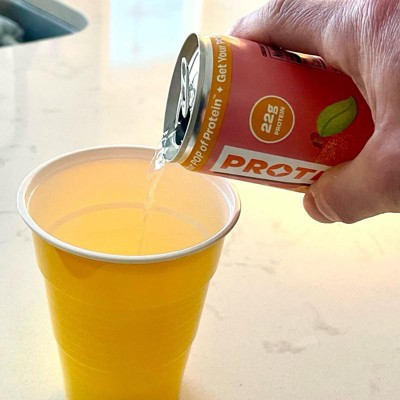 The looks were promising, it was brightly colored and has 22g of protein. After shaking, as the product instructed, the can foamed out of the opening and made a mess. The initial flavor was delicious and peachy sweet. The aftertaste was completely artificial and sour. There is a lingering flavor at least five minutes after consumption. If you are looking for a quick way to get protein no matter what. This is your way. But if you want a delicious drink, stay away.