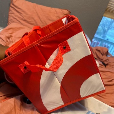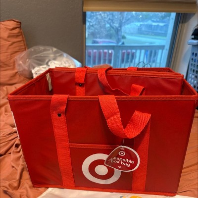 - Sturdy red collapsible box-style reusable bag, perfect for groceries, storage, and everyday use