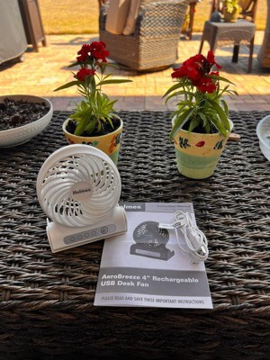 [This review was collected as part of a promotion.] Holmes aerobreeze 4” rechargeable desk fan in white is absolutely adorable. The functionality of this fan is great. It has different speeds and power. It is well worth the money. I would recommend it.