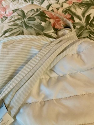 [This review was collected as part of a promotion.] I was excited to try out this Tommy Bahama diamond isle green quilt! I love the color, so relaxing for a bedroom. The quality is great and is comfortably soft. It is however, a little thin and I need another blanket while sleeping.
