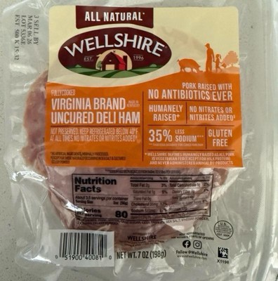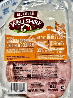 [This review was collected as part of a promotion.] Wellshire uncured ham what I like is it doesn’t have that strong smell that most hams have I also liked the thin slices. Flavor was good not a lot of fat and it was fresh.