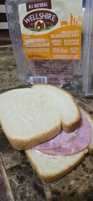 [This review was collected as part of a promotion.] The wellshire virginia deli ham.The package looks good.It tasts good and smells good.We made some vey delouse sandwiches for lunch,my whole family loved them.