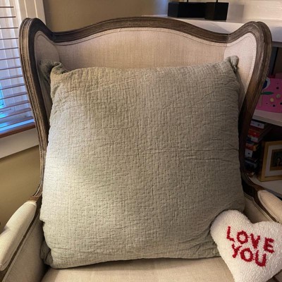 This hearth and hand by magnolia gauze stitch pin dot throw pillow is such a nice green color that it goes with so much since it’s subtle enough to blend in but give the space some color. It has a good amount of support and cushion to it and I love that the cover is removeable for easy care and washing!
