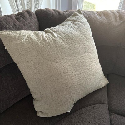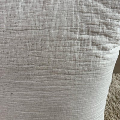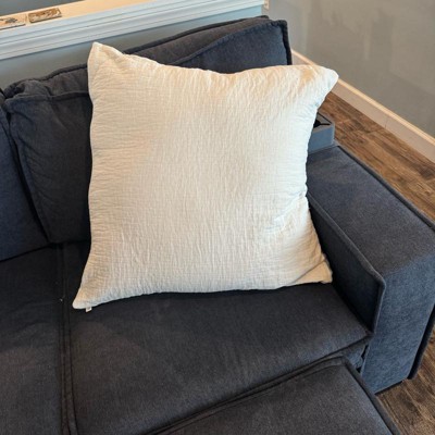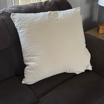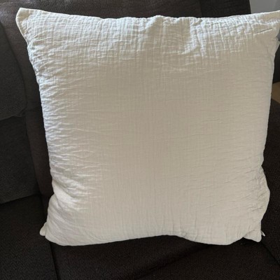 This is a 26 x 26 throw pillow that is gauzed stitched in the color sour cream. This is a linen like material, which it was very soft. It's ivory in color or an off-white. It is rather large would look great with multiple on your bed or to be as an accent pillow on a chair or a couch. It does have a removable cover so you can wash it easily.