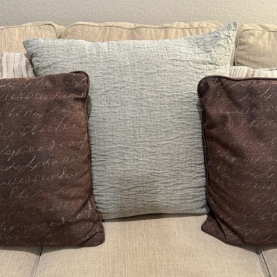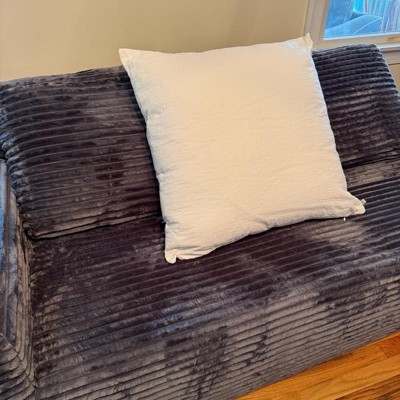 This is a very large throw pillow that is meant for decoration. I love the size of the pillow and the texture. The front reminds me of linen pants texture. I wish this would have looked right in our living room but the color was off. This would be a great addition to someone’s living/family room for decoration.