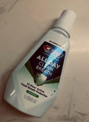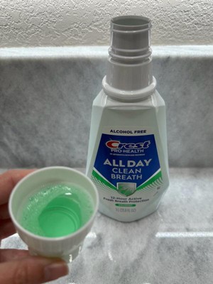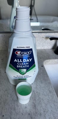 [This review was collected as part of a promotion.] I am pleasantly surprised with the Crest Pro Health All Day Clean Breath Mouthwash . The formula is so refreshing, and leaves my breath fresh for hours. It has a clean minty after taste , without any irritation. It is also a great value for the size, I would definitely recommend this mouthwash.