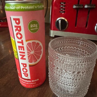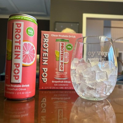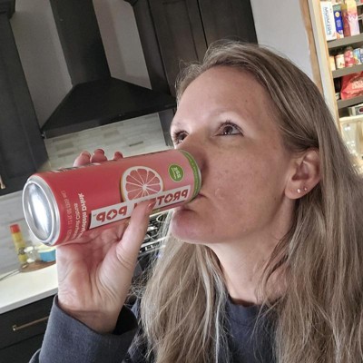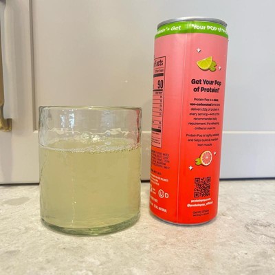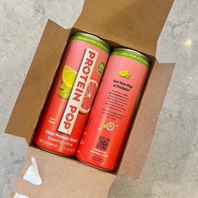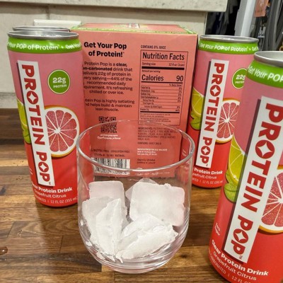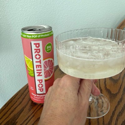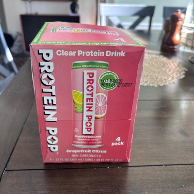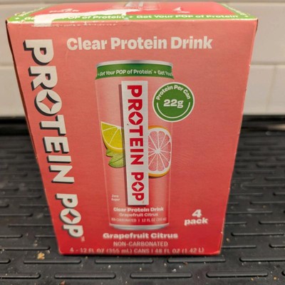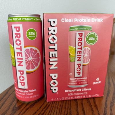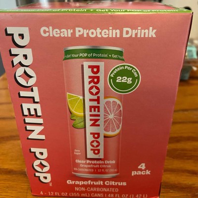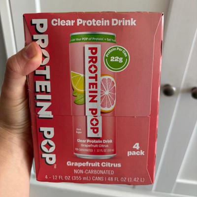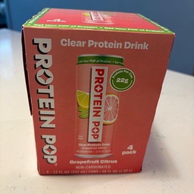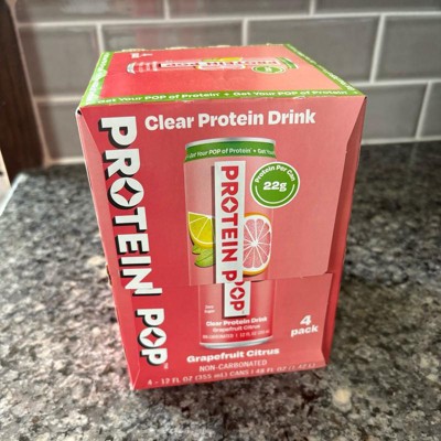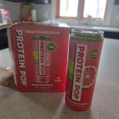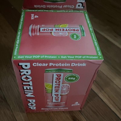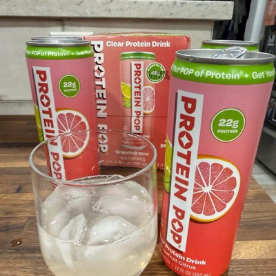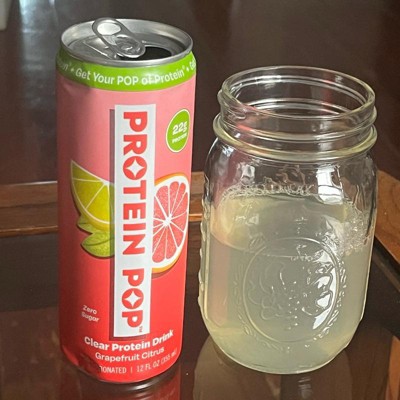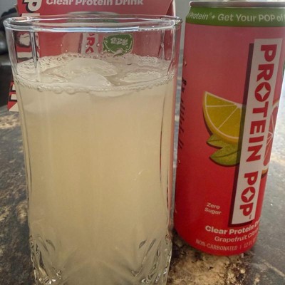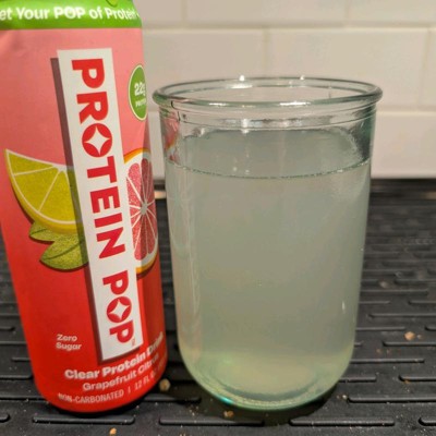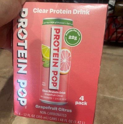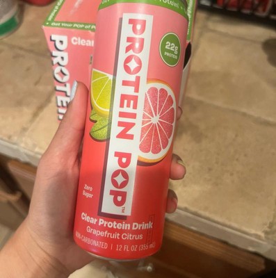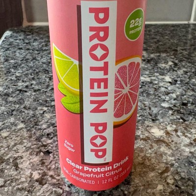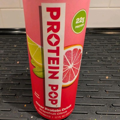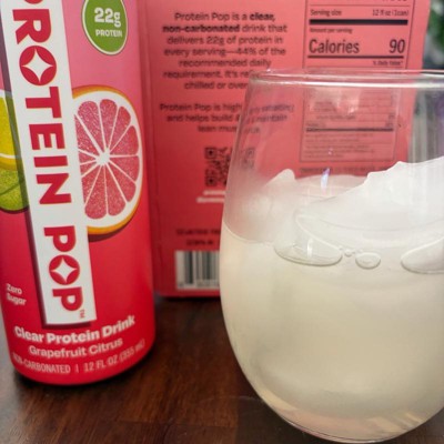 I'm really impressed with the low calories of this pop in the high amount of protein. This is a grapefruit Citrus flavor that is not too sweet and it's just the right amount of tart. I like that this is a clear protein drink not a Milky or chalky type of protein drink that is normally thought of. My kids like it too