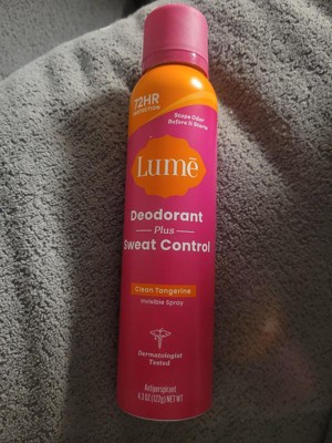 [This review was collected as part of a promotion.] I've been trying the Lume Deodorant Plus Sweat Control Invisible Spray in Clean Tangerine and I’ve really been enjoyed its effectiveness and scent. The scent is fresh, bright, and citrusy without being too strong. It totally reminds me of summer and fresh squeezed juice! I also love how the spray goes on completely invisible, dries quickly, and doesn’t leave any residue or marks on clothing. It’s made with skin-friendly ingredients (no parabens, phthalates, or benzene) and feels gentle with no irritation. Performance-wise, it keeps me feeling dry and fresh throughout the day, and I like that it’s designed to help prevent odor before it starts, which is huge. Overall, it’s a convenient, mess-free deodorant that delivers on both odor and sweat control. 10/10! I received the Lume Deodorant Plus Sweat Control Invisible Spray in Clean Tangerine for free in exchange for my honest review.
