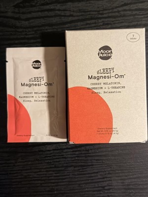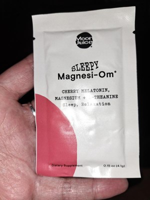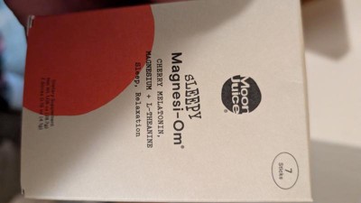 This was my first time trying this brand Moon Juice. My sleep patterns have been offically done with menopause. This is a box of seven individual drink packets of the cherry flavored sleepy magnesi-om dietary supplement. I used these with my go to water I drink daily. The taste was decent but, I really do not think this helped with my overall sleep and relaxation.