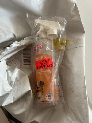 [This review was collected as part of a promotion.] Good packing, makes it easy to spray the product on my husky. Definitely helped when brushing his fur. Not a huge fan of the scent, I would have liked it to have no scent or even maybe a more herbal peppermint, tea tree scent to it. I will still definitely buy when I run out.