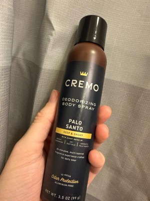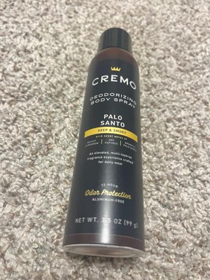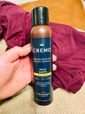 [This review was collected as part of a promotion.] I tried the Cremo Deodorizing Body Spray in Palo Santo. The Value feels fair for the bottle size, and the Quality of the fragrance is subtle and pleasant. Performance was adequate for everyday errands, and Coverage seemed even with a couple sprays. Suitability: good for casual use but I wouldn’t reach for it during intense workouts.