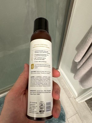[This review was collected as part of a promotion.] First off, this deodorant is unique. It is fairly potent. I had to acknowledge that I was using this deodorant because it sprays a lot with a light press. One light press is ALL you need. The deodorant smells great and caused zero discomfort. The smell lasted the 24 hours I typically need it for, but im sure it would last longer. It can be a little runny if you spray too much. If you currently use a different spray style be prepared to accidentally use too much.